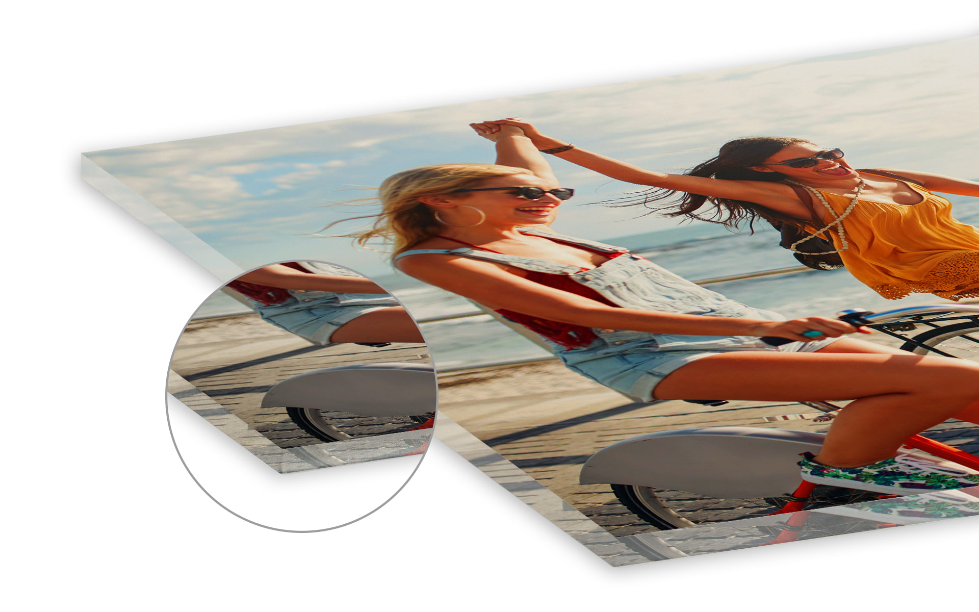 Für Ihr schönstes Foto hinter Acryl kommt hochwertiges Acrylglas zum Einsatz. Die 0,3 cm schlanke Platte ist formstabil, langlebig und punktet mit Brillanz und Tiefenwirkung.